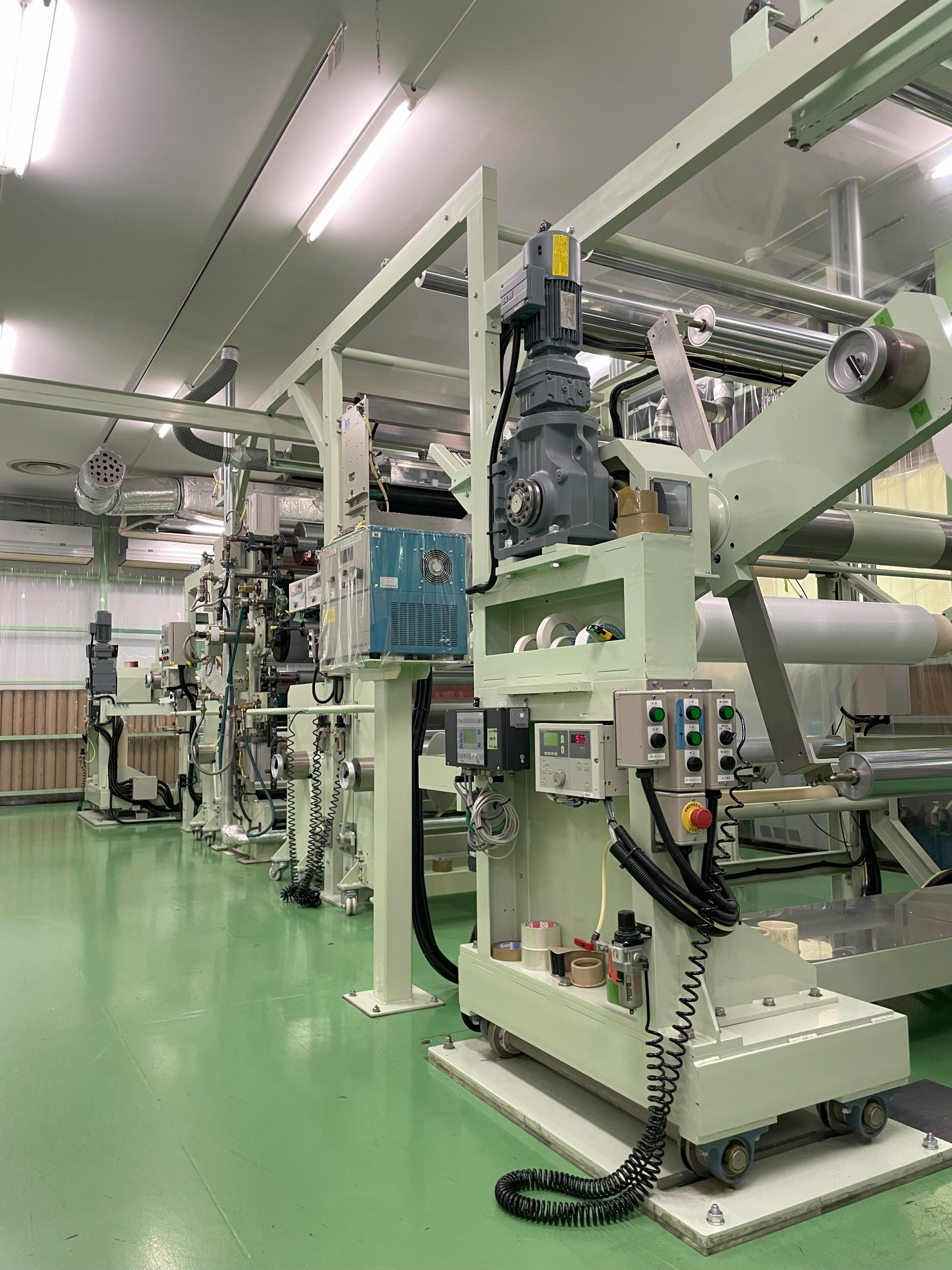 接着剤を使用しないラミネート加工法です。 加工も低温形成するため、低分子分解生成物がより少なく、食品、医療品に適しています。 |